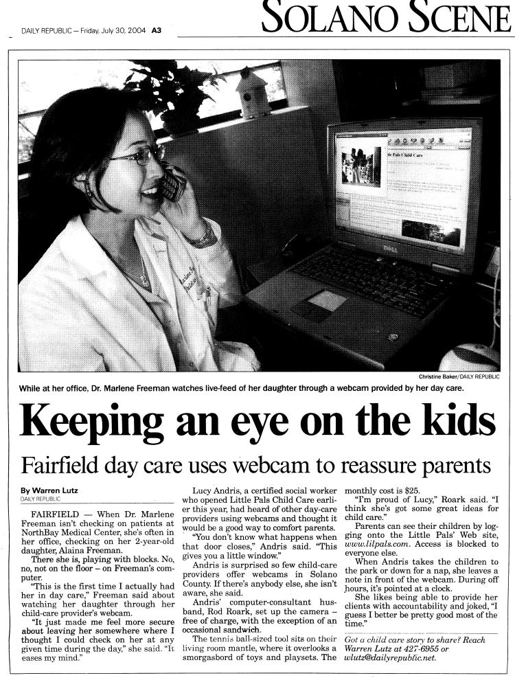 Check out this newspaper article, from July, 2004, about the Little Pals webcam!